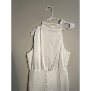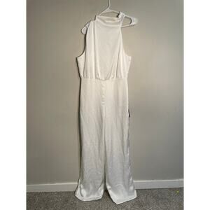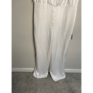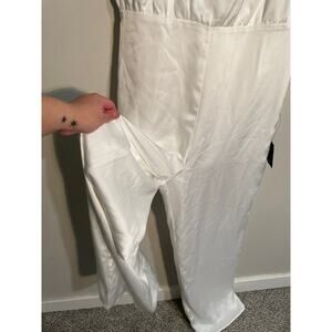 Lulus Stunning Promise White Satin Asymmetrical Wide-Leg Jumpsuit Size Large