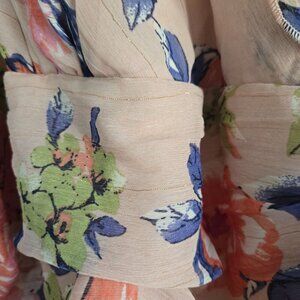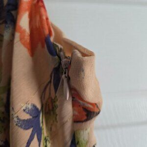 This Lulus midi dress features a blush pink floral design with a ruched detail and a long slit, perfect for any elegant event. Great wedding guest Dress. The subtle gold thread and adjustable straps add a touch of sophistication to this flattering and stylish piece. Retail $82