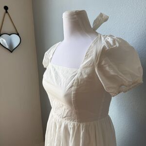 Lulus Stylish Merriment White Puff Sleeve Embroidered Midi Dress Size Small