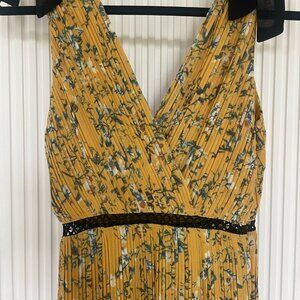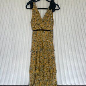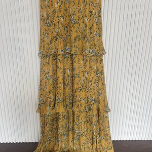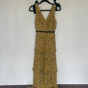 Elegant mustard maxi dress with floral design. Sleeveless with a layered skirt. Purchased on Poshmark but went with something else. Never worn.