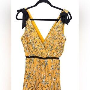Lulus Such Sophistication Yellow Black Floral Tiered V Neck Maxi Gown Size XS - Bow details on the shoulder - Perfect Condition