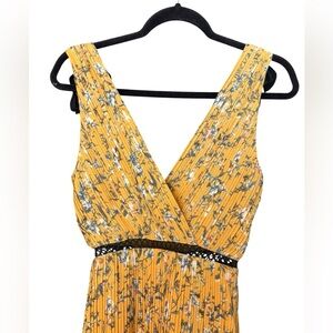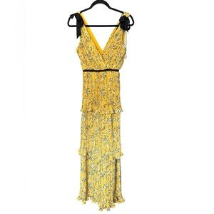 Lulus Such Sophistication Yellow Black Floral Tiered V Neck Maxi Gown Size XS