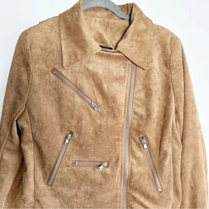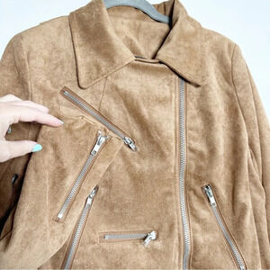 Lulus Suede Moto Jacket Camel Tan Brown Size Medium Bikercore Suede With Love