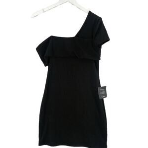 Lulus Sultry Side Black Ribbed One-shoulder Bodycon Mini Dress - Small NWT