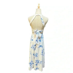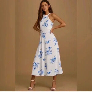 Lulu's Summer Dream Blue Floral Print Tie-Back Halter Midi Dress