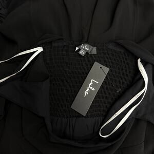 Lulus Summer Invite Black Tie-Strap Tiered Midi Dress size Small NWT