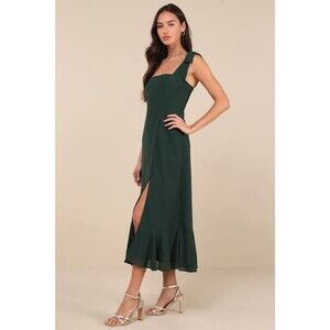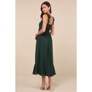 Lulus Summer Invite Dress Women's S Emerald Green Midi Tie Strap Tiered NWT