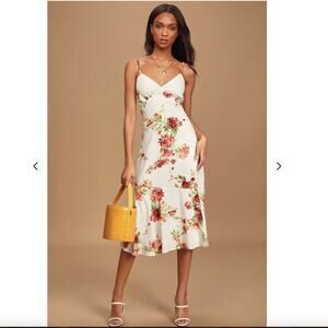 Lulu's Summer Lovin' White Floral Print Sleeveless Midi Dress Size Small