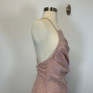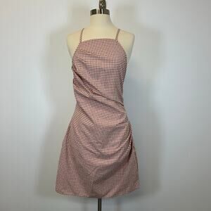 Lulus Summery Little Thing Pink Gingham Sleeveless Ruched Mini Dress Size L