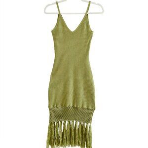 Lulus Sunny Festival Ribbed Knit Light Green Fringe Boho Midi Dress Size Small
