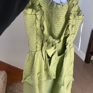 Lulus Super Sweet Lime Green Smocked Ruffled Tie-back Mini Dress - Size L