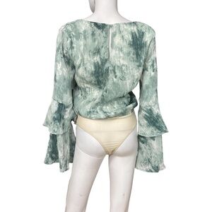 Lulu’s Surplice Bodysuit Blouse Flounce Sleeve New