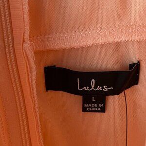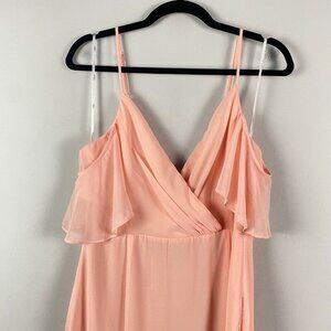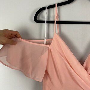 Lulus Surplice Midi Dress Size Large Short Sleeve A-Line Light Peach Pink