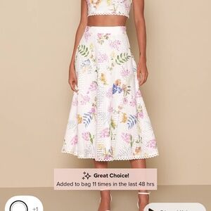 Brand new, never worn. For a trip to Hawaii. Material a little too thick for the heat however so cute. I don’t routinely wear crop tops in my day to day to listing for sale. It’s got eyelet detail. Sweet romantic pattern. It’s gorgeous. I cut the tag off the top thinking I could wear it with shorts on vacation but it just didn’t work without the skirt. Skirt still has tag attached. Unworn other than to try on.