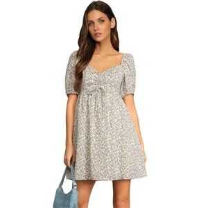 Lulus Sweet For Spring Ivory Floral Puff Sleeve Mini Dress Size M