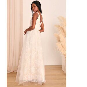 Lulus Sweet Love Ivory Lace Beaded Maxi Dress XS New with Tags, Reg. Retail $170.00