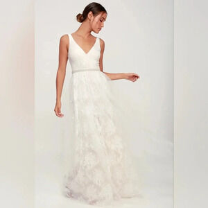 Lulu's Sweet Love Ivory Lace Beaded Maxi Dress XS Wedding Bridal Party