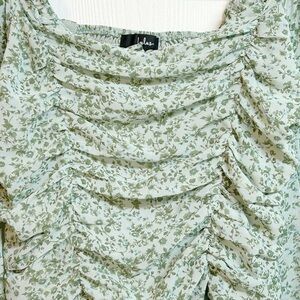 Lulus Sweet Optimism Dusty Sage Floral Print Ruched Long Sleeve Top Size Large