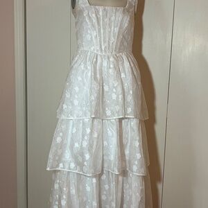 Lulus Sweet Potential White Floral Burnout Tiered Midi Dress -Size Small -NWT