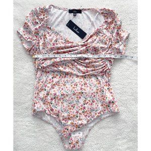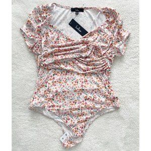 Lulus Sweetest Nature Ivory Floral Print Short Sleeve Bodysuit XL Extra Large