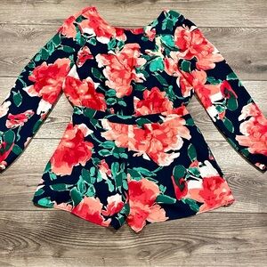 Lulus Sweetest Song Backless Long Sleeve Floral Print Shorts Romper Size Large