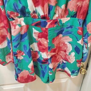 Nothing rings as sweet as the Lulus Sweetest Song Green Floral Print Backless Long Sleeve Romper! Lightweight woven fabric boasts a gorgeous pink, blue, and white floral print that dances across the relaxed bodice with a rounded neckline and long sleeves. A banded waist sits atop flirty shorts. The backless design adds the perfect peek of skin to this party-ready romper.