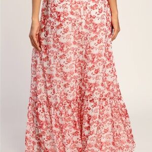 Lulus Sweetly Blooming Ivory Floral Print Tiered Maxi Skirt Size S