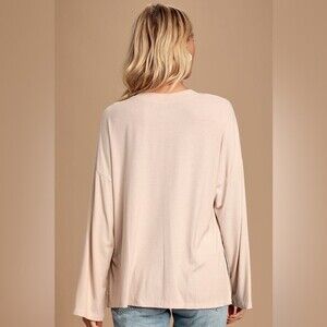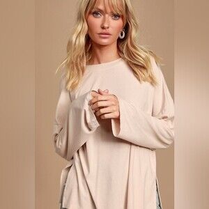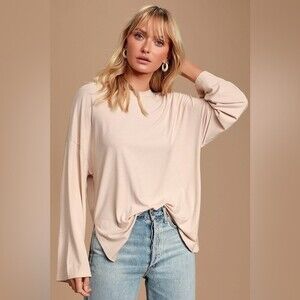 Lulus Sz S Mercurio Beige Ribbed Long Sleeve Top