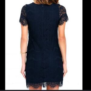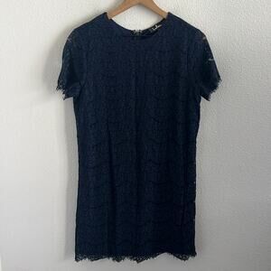 Lulus Take Me To Brunch Navy Blue Lace Shift Dress Back Zip. Lined.