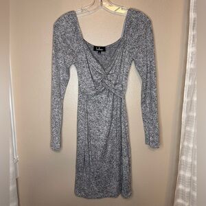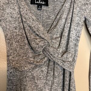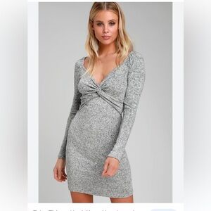 Lulus Take Things Up A Knot Feathered Gray Bodycon Dress Size Small