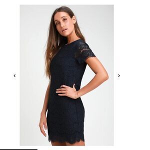 Lulus Take me to Brunch Navy Blue Lace Shift Dress M