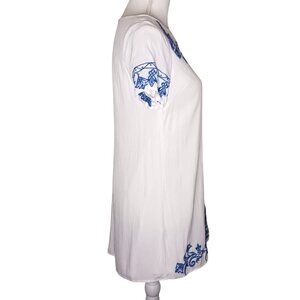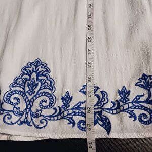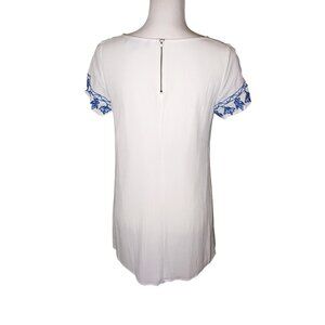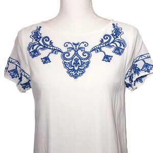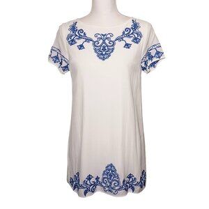 Lulus Tale to Tell Embroidered Shift Mini Dress White & Blue Size S