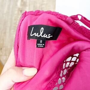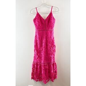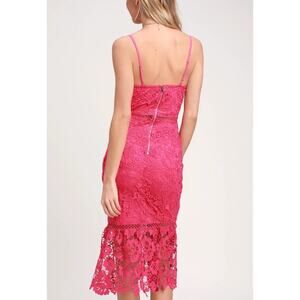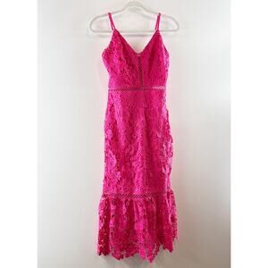 Lulus Taliah Sleeveless Floral Lace Crochet Trim Midi Trumpet Dress Hot Pink S