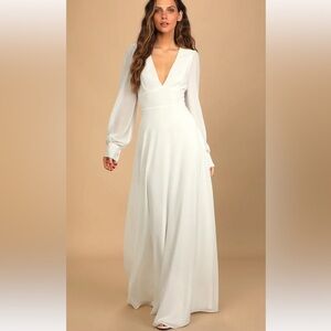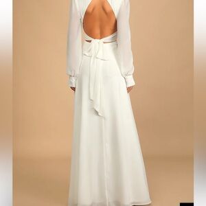 Lulus Talk About Divine White Long Sleeve Backless Maxi Dress