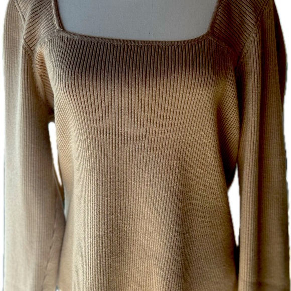 Embrace the cozy elegance of this tan ribbed sweater from Lulu's, featuring a classic a square neck design. The fitted structure and uniform texture make it a versatile addition to any wardrobe. Perfect for layering or wearing on its own, this sweater combines comfort with style.