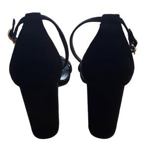 Lulus Taylor Faux Suede Strappy Black Chunky Platform Heels Size 8