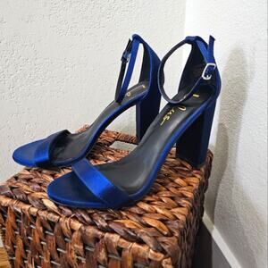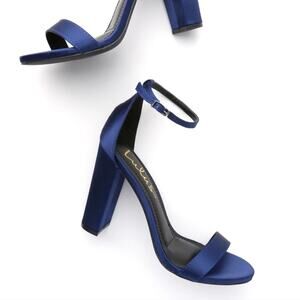 Lulu's Taylor Navy Satin Ankle Strap Heels