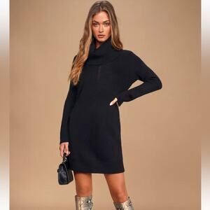 Lulus Tea Reader Black Long Sleeve Turtleneck Sweater Dress Size XS NWT