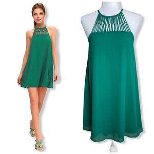 Lulus Tell Me Green Swing Dress Caged Apron Neckline Cocktail Mini Women's Sz Sm