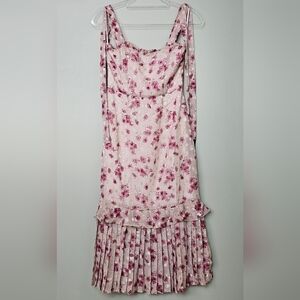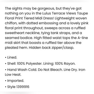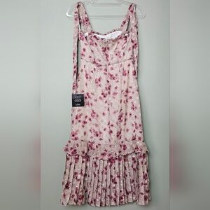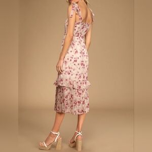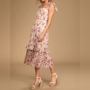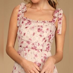 Lulus Terrace Views Taupe/ Pink Floral Print Tiered Midi w Tying Shoulder Straps