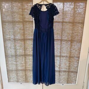 Lulus The Greatest Navy Blue Maxi Dress Open Back Chiffon Lace Size M Weddings