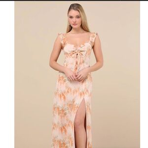 Lulus The Way To Love Orange Floral Print Ruffled Maxi Dress - Size M