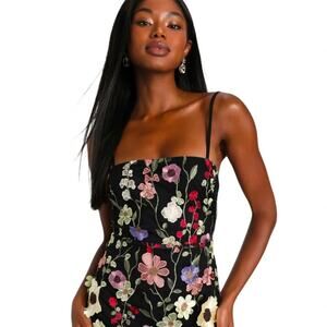 Lulus Thriving Energy Black 3D Floral Embroidered Lace-Up Midi Dress Size XS NWT