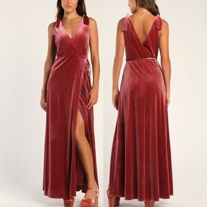 Lulu's Tie Strap Wrap Stretch Maxi Dress Cocktail Party Rose Velvet Medium