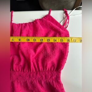 Lulus Tiers and Applause Hot Pink Swiss Dot Tie-Back Tiered Midi Dress Sz S