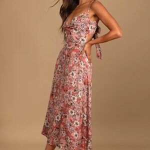 Lulus Ties With You Rose Pink Floral Print Tie-back Midi Dress - Size M