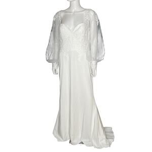 Lulus Timeless Adoration White Embroidered Bishop Sleeve Maxi Dress Womens Sz XL