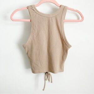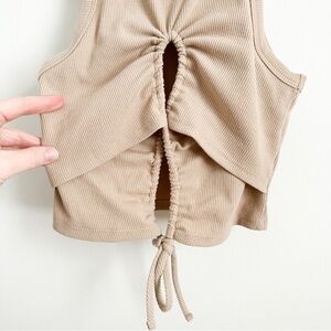Lulu’s Times Two Beige Double Keyhole Cropped Drawstring Tank Top. Size XS. Worn once maybe. Excellent condition. Stretchy.