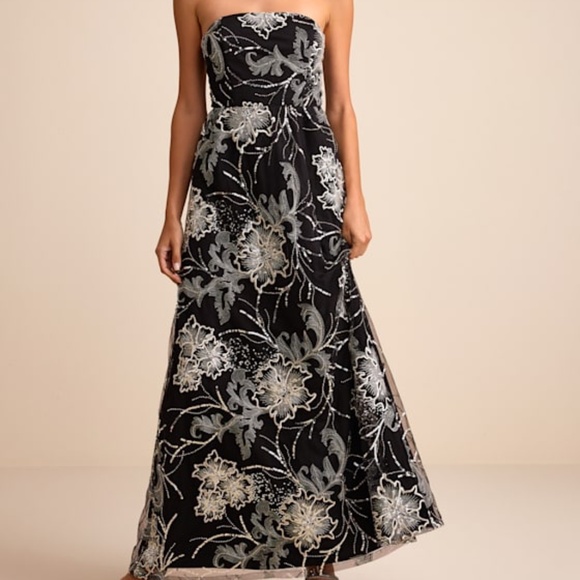 Lulus Tisdale Black And Silver Embroidered Strapless Maxi Dress - Size XS NWT