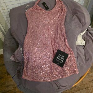 Lulus Tiya Light Pink Sequin Halter Bodycon Mini Dress - Size XL